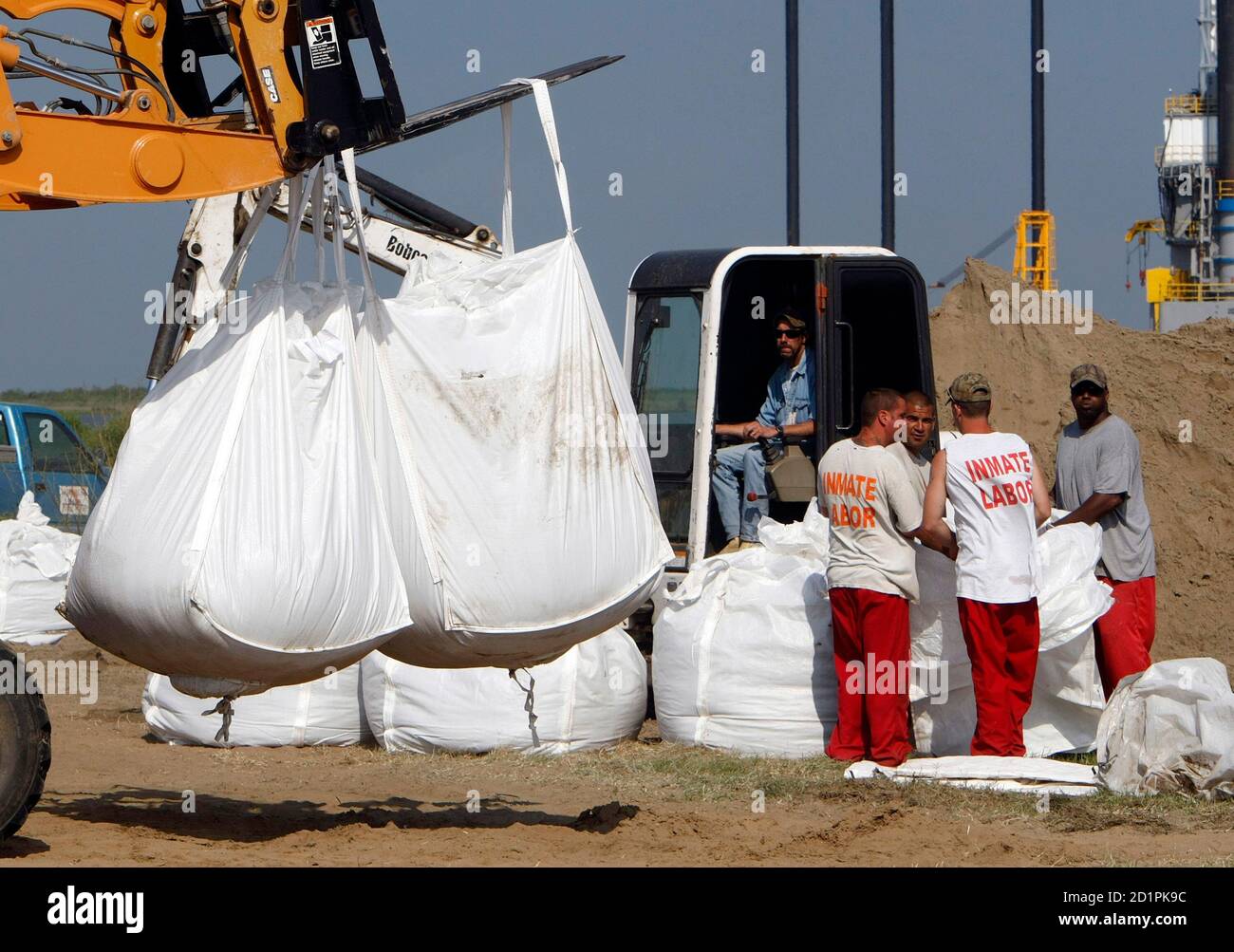 Inmates From A La Fourche Parish Jail On A Work Release Program Fill Giant Sandbags In Port Fourchon Louisiana May 11 2010 U S Army National Guard Troops Were Dropping The Sandbags Using